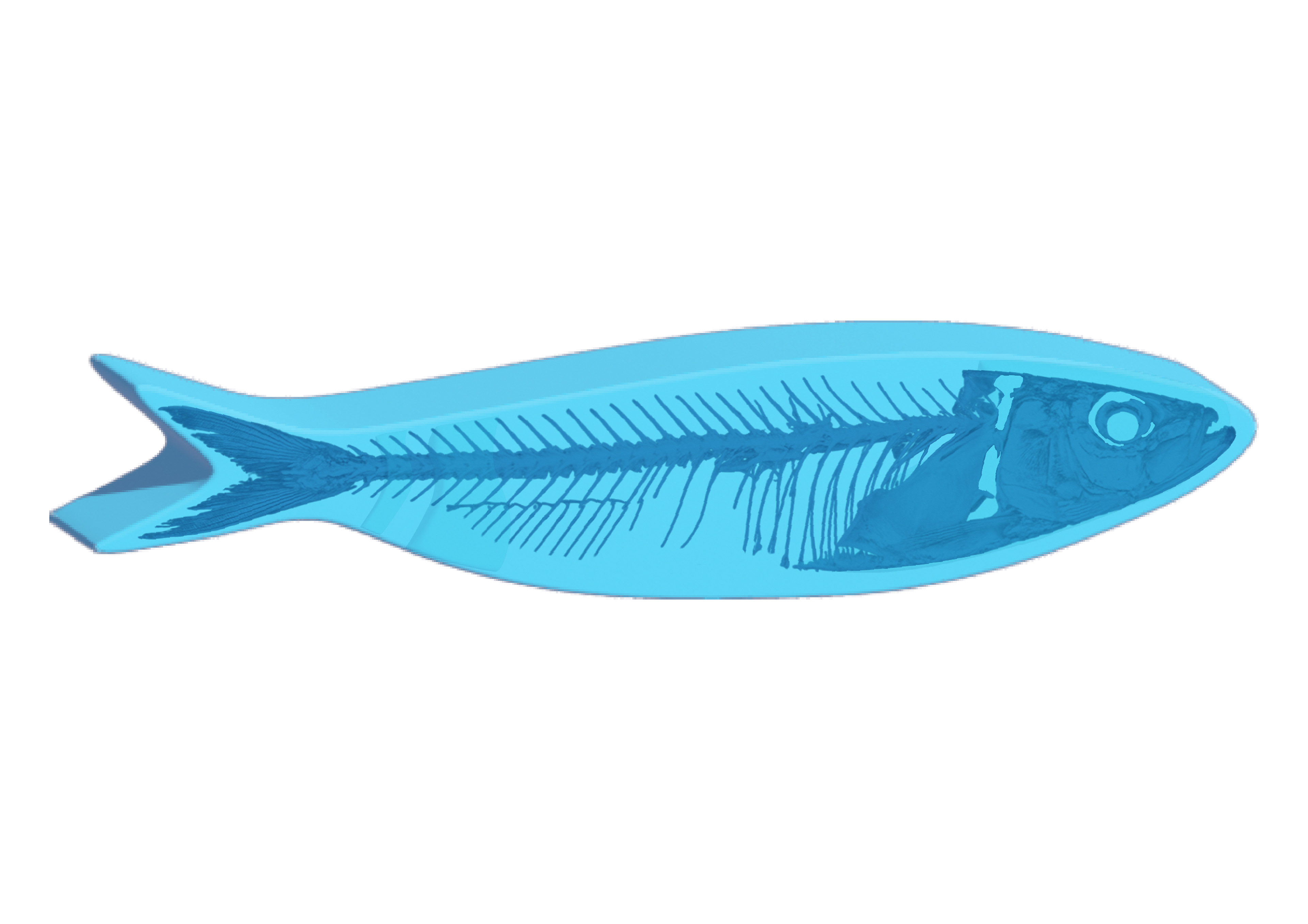 Essa arte foi inspirada em radiografias. Gerei o esqueleto da sardinha com IA e depois editei no Photoshop, na silhueta adicionei detalhes como bordas finas feitas com partes de uma radiografia. A ideia é parecer uma radiografia real de uma sardinha, por isso o nome “Sardinhaografia”.